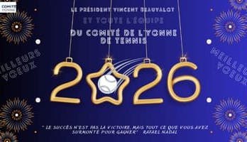 Vincent BEAUVALOT, président du Comité de l’Yonne de Tennis ainsi que l’ensemble des membres du Comité souhaite une très belle année 2026 a l’ensemble des acteurs du monde de la petite balle jaune : joueurs, clubs, présidents, bénévoles, jeunes, parents, partenaires