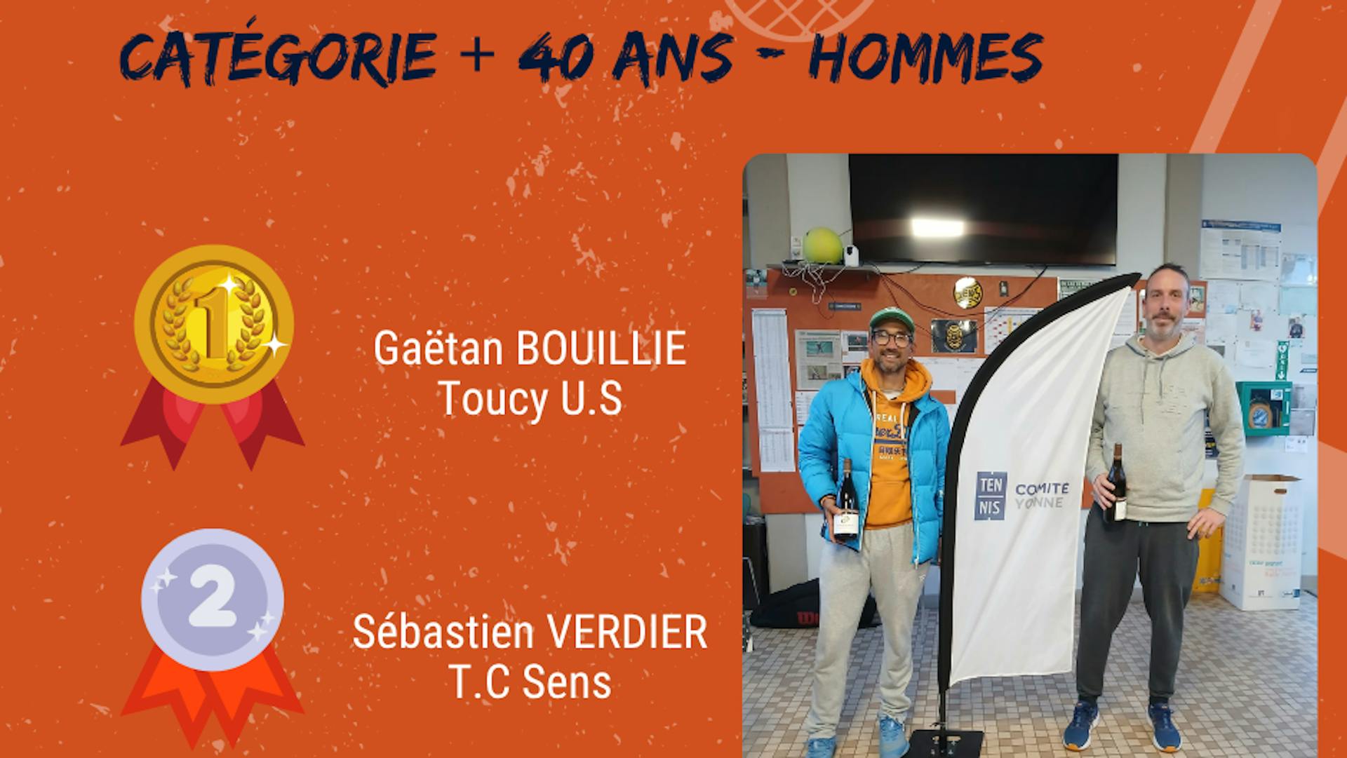 - +40 ans Hommes : 1/2 finale de Gaëtan BOUILLIER (TOUCY U.S)