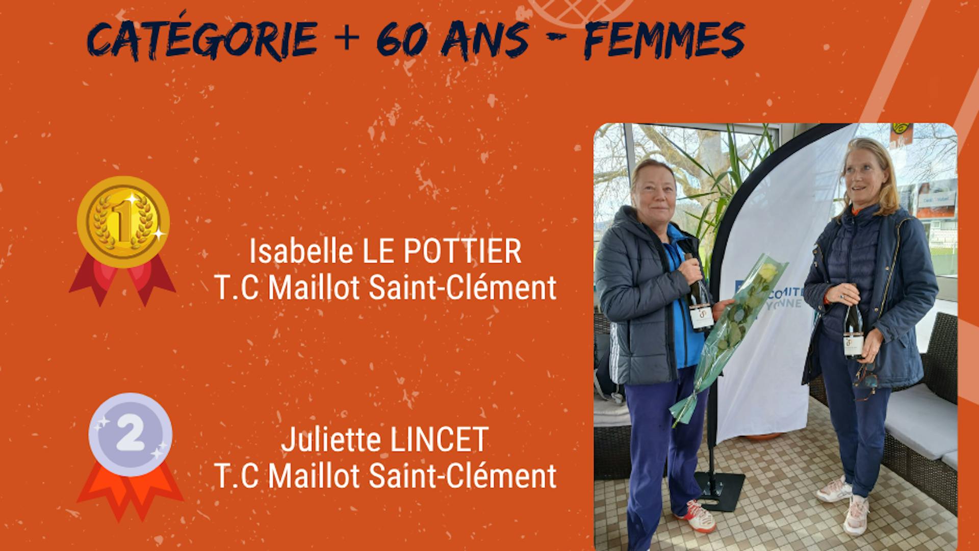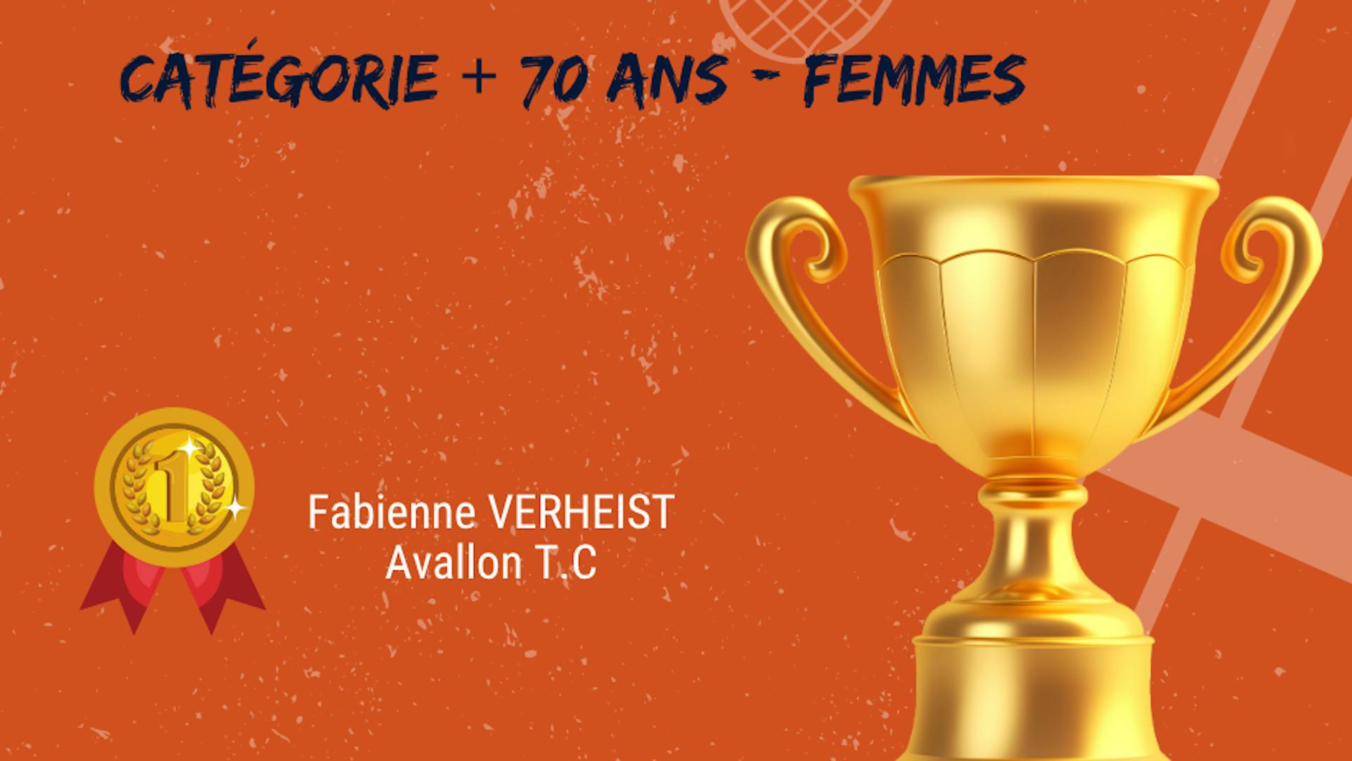 - +70 ans Femmes : Victoire de Fabienne VERHEIST (AVALLON T.C)